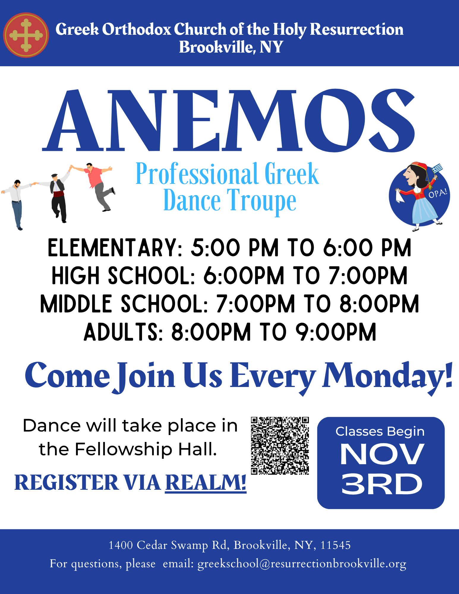 We are excited to announce that thanks to your continued support and interest in our Anemos Dance Troupe, we will be beginning our fifth year of dance on Monday, November 3rd, 2025.