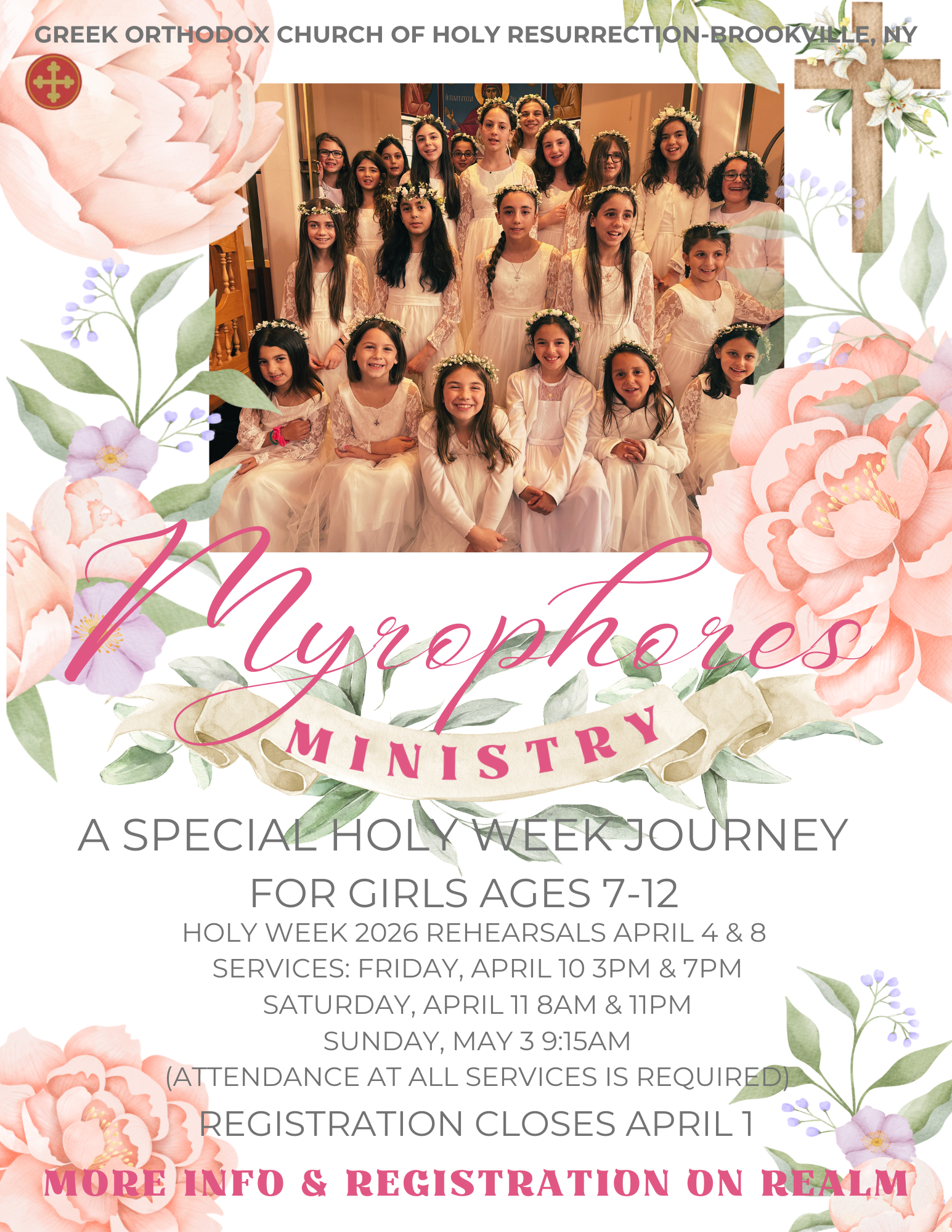 Experience the profound beauty and joy of Holy Week by becoming a Myrophora, a cherished tradition where girls play a special role in our church’s most sacred services.